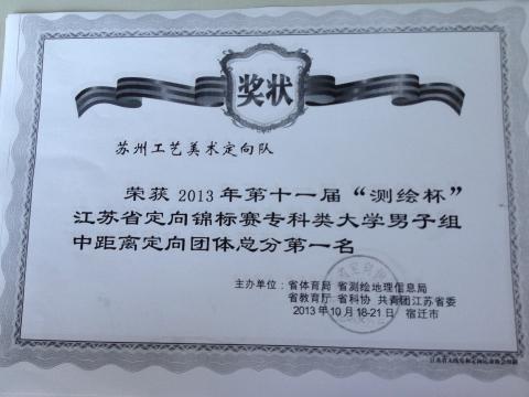 | 2013“测绘杯”江苏省定向锦标赛专科类大学男子组百米定向团体赛 |